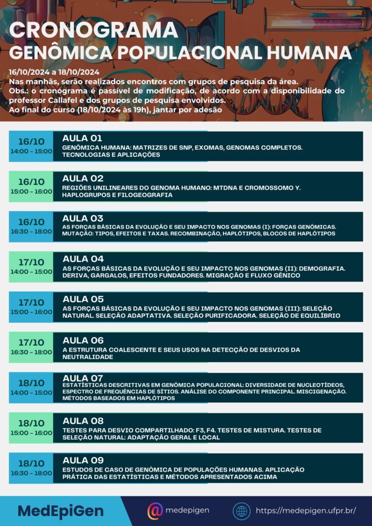 Os cursos são gratuitos e voltados a professores, pesquisadores e estudantes de pós-graduação, mas estão abertos a toda a comunidade acadêmica. Eles serão realizados de forma híbrida, permitindo a participação tanto presencialmente no Departamento de Genética da UFPR (Curitiba – PR), quanto online, via Microsoft Teams. Esta é uma excelente oportunidade para se aprofundar em duas áreas cruciais da genética, com a orientação de um renomado especialista internacional. As aulas serão gravadas e disponibilizadas por até 15 dias após o evento, oferecendo flexibilidade para quem não puder acompanhar ao vivo. Durante o curso, os participantes terão a oportunidade de explorar: